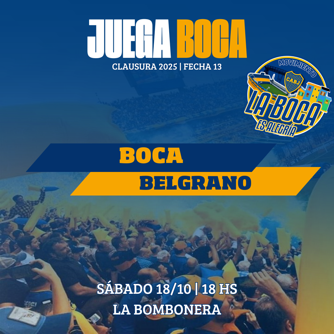 β½ #Clausura2025 π Belgrano π SΓ‘bado 18/10 π 18:00 π La Bombonera π» @elcanaldeboca