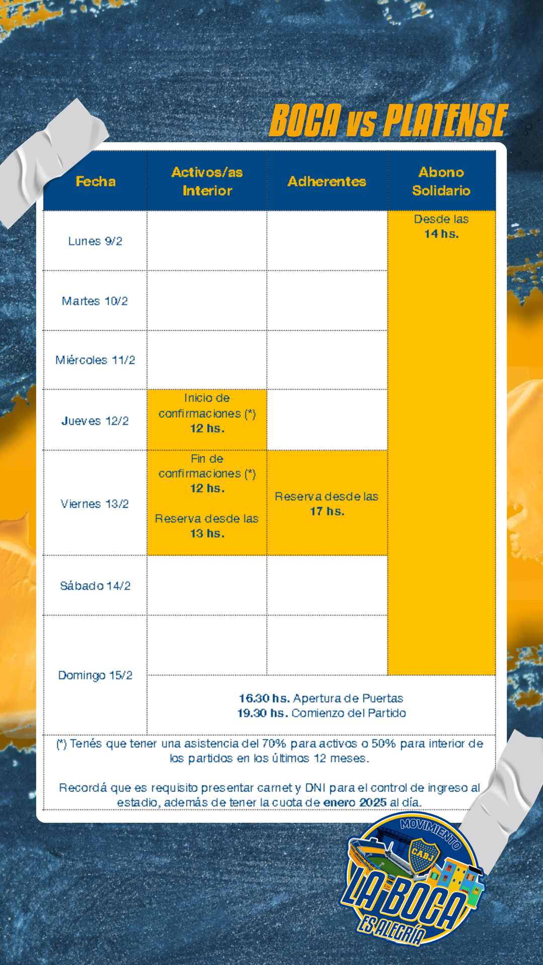 Info importante para el próximo partido