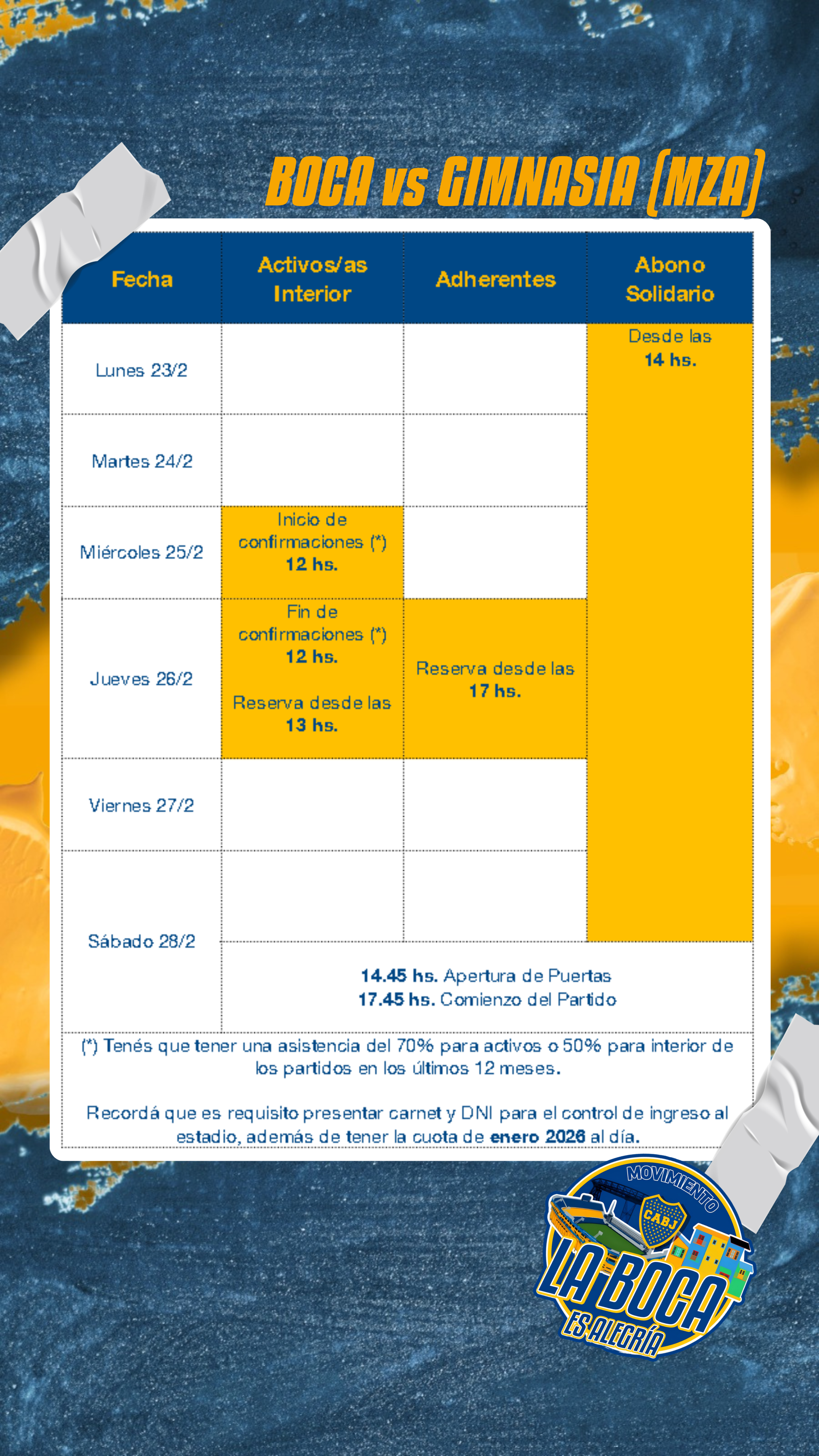Info importante para el próximo partido